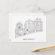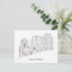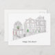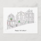 Tarjeta de felicitación navideña dibujada a mano que ilustra las casas victorianas decoradas que bordean las calles de San Francisco.