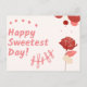 Esta encantadora postal "Happy Sweetest Day" presenta una paleta de colores rosa y rojo dulce, decorada con una hermosa rosa roja y puntos lúdicos. El delicado diseño aporta calidez y alegría, lo que lo convierte en la manera perfecta de difundir amor y aprecio en este día especial. Ideal para enviar a amigos, familiares o alguien especial para hacerles saber que estás pensando en ellos.