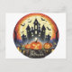 Postal Festiva Feliz Halloween Castle Bats Pumpkins Halloween