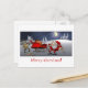 Tarjeta perfecta para saludos o regalos navideños tardíos. Un personalizado de Santa y Rudolph arreglando su trineo roto.