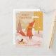 Postcard de "Feliz Navidad" con adorable personalizado zorro de bosque y animales de bullfinch con colores amarillo naranja rosa y rubio para las vacaciones de invierno.
