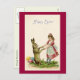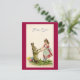 Ilustracion vintage de un joven chica que parece estar bailando con un gran conejo marrón.