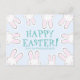 Feliz Pascua verde azulado rosa pálido azul y blanco personalizado texto lindos conejos divertidos modernos conejos tarjeta postal de Pascua