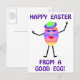 La fotografía, la pintura y los gráficos de computadora se combinan para crear graciosos y humorísticos camisetas de Pascua Feliz, tarjetas de felicitación y regalos de novedad. La imagen es un huevo de Pascua con brazos y piernas usando un bonnet de Pascua. La leyenda dice "¡Feliz Pascua desde un buen huevo!"