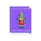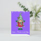 Cute Happy Santa's Little Friend Holiday Purple Postcard . Genial para esta próxima temporada. Es ideal para sus clientes, familiares y amigos. Deséenles una Feliz Navidad.
