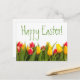 ¡Nada dice primavera como un montón de tulipanes coloridos! Todo el texto es personalizable. Puede cambiar el tipo de letra y el color del texto, así como agregar cualquier texto a la parte posterior de la postal si lo desea. Sentimiento: ¡Feliz Pascua! Fondo blanco.