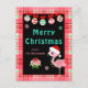 This cute and fun holiday postcard can be personalized with a family name or title. It features an adorable flamingo in a santa's hat and fairy lights on a pink and red plaid background. The text combines sans serif fonts for a stylish and modern look. Winter snowflakes and patterned baubles add a festive touch.