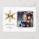 Un diseño de postales festivo que incluye un espacio para tu foto favorita con un copo de nieve purpurina de oro de moda y la moderna redacción del guión "Alegría". Personalice este diseño fotográfico único de vacaciones con el saludo y el nombre de sus Navidades personalizados.