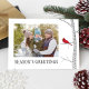 Simple cardenal rojo sentado en un árbol blanco de abedules de invierno en la tranquila soledad del invierno. Una hermosa tarjeta de fotos moderna de Navidad. Este diseño representa la belleza de un ave de invierno en un bosque de bosques. Deséenle a usted y a los suyos un Feliz Festividad con este diseño moderno. Este diseño presenta cardenales rojos de invierno de vacaciones para Navidades, foto de la familia 1, elegante cardenal rojo minimalista, tarjeta de Navidades de la temporada de saludo, tipografía simple moderna, árbol de aves rojas de la naturaleza, rama de árbol de abedul de invierno, tarjeta de saludo de fotos para Navidades de vacaciones, bosque de bosques botánicos, árbol rústico de leña de abedul una postal rústica de presupuesto.