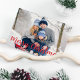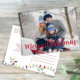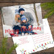 Este diseño presenta Navidades vacaciones lindas luces de cuerda, alegre foto familiar simple de Navidad, colorida tipografía clásica de color rojo festivo, una foto elegante, moderna y elegante decoración de árbol minimalista, estilo moderno y elegante, letra moderna de guión de caligrafía, tira de Navidades caprichosos de luces, obra de laura Lacina, una divertida tarjeta postal de presupuesto para vacaciones de Navidades.