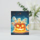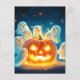 Postal Festiva Fiesta de fantasmas con brillo de calabaza Acuarel
