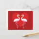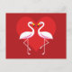 Postal Festiva Flamencos blancos rosados con corazón rojo
