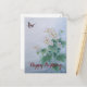 Flor china con mariposa es un pincel de estilo tradicional chino "gongbi". Acuarela y tinta sobre papel de arroz. El Rosa de algodón representa a veces un hermoso chica. El rosa de algodón más famoso es el "rosa de algodón borrachos", ya que su color es blanco por la mañana, después rosado al mediodía y rojo por la noche. Es muy preciado y simboliza la precocidad, la castidad y la belleza. En el Rosa de algodón chino suena como la palabra riqueza y gloria, la flor suena como la palabra magnífica, por lo que esta combinación simboliza "la gran riqueza y la gloria inagotables". Uno de los animales simbólicos más importantes de China es la mariposa. En la cultura china, la mariposa es vista como un símbolo de renacimiento después de la muerte y un indicador de que tu alma gemela ha llegado. La mariposa también representa la vida larga y la felicidad. La palabra japonesa para mariposa puede significar tanto longevidad como alegría dependiendo del contexto en el que se usa; las mariposas a menudo eran representadas en pinturas tradicionales junto con otros símbolos de longevidad como peonías y otras flores. La pintura china es una de las tradiciones artísticas continuas más antiguas del mundo. Gongbi, o "Pintura meticulosa", ha sido especialmente favorecido por su técnica realista y su color atrevido. GongBi es una técnica realista cuidadosa en la pintura china, lo opuesto al estilo interpretativo y libremente expresivo de XieYi. La técnica exige que las pinceladas "sean tan detalladas como puedan ser", utiliza pinceles muy detallados que delimitan los detalles con mucha precisión y sin variación independiente o expresiva. Además, trata de lograr un equilibrio entre la expresión artística y la vitalidad, a menudo es muy colorida y suele representar temas figurales o narrativos. Gongbi requiere dibujar con líneas finas primero para representar la imagen exagerada de los objetos, y después agrega tintas y colores capa por capa para acercarse a la perfección de la exquisitez y el arte fino.
