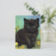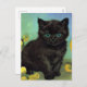 Postal con un gato negro al estilo de Van Gogh! Un florido gatito negro se sienta al lado de las flores amarillas sobre un fondo verde y azul. ¡Un regalo divertido para los amantes del gato y los coleccionistas holandeses de arte!