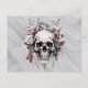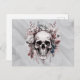 Postal Festiva Flores blancas de cráneo verde gris Halloween