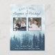 Esta postal es la manera perfecta de enviar Navidades o saludos de vacaciones. Presenta una decoración rústica de color montañés con pinos de color azul envueltos en niebla. El saludo dice: Deseándote a Ti y a Ti la más feliz de las vacaciones, y hay espacio para dos fotos. Una forma maravillosa de enviar saludos de temporada.
