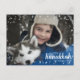 Lindo y diversión, esta postal del día de fiesta es la de manera perfecta de enviar los saludos de la estación a los amigos y a la familia. Nube azul de la acuarela de las características con la nieve y el bokeh blancos. Cambie la plantilla de la foto sus la propia. El frente y la parte posterior tienen texto que se pueda cambiar para caber su apellido y remite.