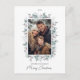 Hermoso diseño fotográfico personalizado con navidades de pinos y ilustraciones de bayas.