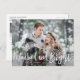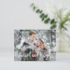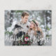 Postal de invitación boda para la temporada navideña con un texto tipográfico escrito a mano que dice "casado y brillante". Este moderno texto superpuesto en tu foto también tiene giros y estrellas dibujados a mano. Puede añadir una segunda imagen y un mensaje en la parte posterior de la tarjeta.