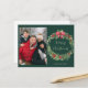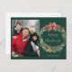 Celebra la temporada con esta tarjeta postal de feriado de los Navidades de la corona. Reemplace la foto con la suya. El fondo verde con Navidades clásicos era cordial. El texto verde claro dice: Feliz Navidad en el centro de la corona. Bajo la corona se puede personalizar el texto con su propio nombre.