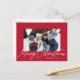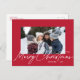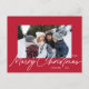 La tarjeta postal navideña fotográfica Red Simple Merry Christmas incluye un moderno saludo de caligrafía sobre una foto, con espacio adicional en la parte posterior para tu mensaje.