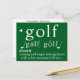 Bring a smile to every golfer’s day with this Funny Golf Definition Anger Management Humor Pun Holiday Postcard. Featuring a playful faux‑dictionary definition of “golf,” this design captures the true spirit of the game—equal parts skill, cussing, and creative scorecard repairs. The bold typography and clean layout make it a perfect pick for golf lovers who appreciate a good laugh, whether they’re celebrating a holiday, heading out for a round, or sending a quick note to a fellow player. Ideal for pro shop displays, golf‑themed gifts, or anyone who knows the emotional rollercoaster of 18 holes.