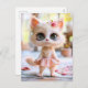 Postal Festiva Gatito lindo con vestido rosado
