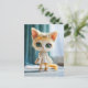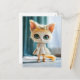 Postal Festiva Gatito vestido de blanco en interiores