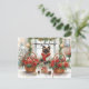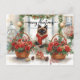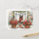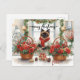 Postal Festiva Gato arreglando flores de invierno para las fiesta