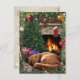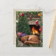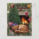 Postal Festiva Gato durmiendo junto a la chimenea en Navidades