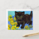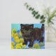 Postal con un gato al estilo Van Gogh con girasoles. Un gatito negro bonito cuidadosamente posa con flores amarillas. ¡Un regalo fabuloso para los amantes del gato y para los coleccionistas holandeses de arte!