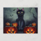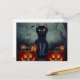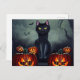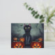 Postal Festiva Gato negro de Halloween y calabazas espeluznantes