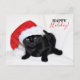 Postal Festiva Gato negro lindo con sombrero de Santa