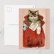Postal Festiva Gato Victoriano Antiguo En Bolsa Día De San Valent