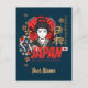 Postal Festiva Geisha japonesa vintage con bandera Koi y alma de