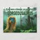 Un lindo dinosaurio raptor, Gorgeousaurus moteki (el hermoso lagarto de Motek), con el pelo largo, rizado, rubio, en un bosque verde, de los dinosaurios. También aparece un texto que dice: "Si fueras un dinosaurio, serías un GORGEOUSAURUS". Personalizar agregando su propio texto adicional. Genial como El día de San Valentín o nota de cumpleaños para ella.