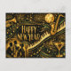Postal Festiva Glamuroso Año Nuevo Jazz Art Déco Dorado