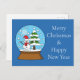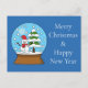 Postal Festiva Globe de nieve con Snowman y árbol de pino | Perso