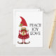 Diseño caprichoso de vacaciones con una adorable gnomita con el texto "Paz, Alegría, Amor". Personaliza la parte de atrás con tu propio mensaje especial para las fiestas.