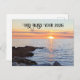 This beautiful postcard features a photo of a sunset over the sea with a customizable New Year message and mailing information on the back.