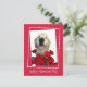 ¡Díganle a alguien cómo se siente de ellos con esta linda tarjeta! Design muestra una fotografía de un perro recuperador de oro con guiños haciendo guiños que está parado frente a un ramo de rosas rojas. El texto en la parte delantera dice: "Feliz Día de San Valentín", mientras que el texto en la parte trasera del personalizable dice: "Te amo".