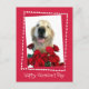 Postal Festiva Golden Retriever con El día de San Valentín de ros
