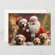 Postal Festiva Golden Retrievers, puppies and Santa Claus