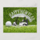 Postal Festiva Golf Feliz Año Nuevo con hierba verde para Golfer