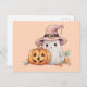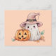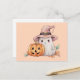 Entre en el encantador mundo de Halloween con nuestra deliciosa postal de Halloween! Aprovecha el espíritu de la temporada con su encantador diseño, en el que destaca un fantasma muy lindo vestido con un gorra de brujas rosadas, junto a una clásica lámpara jack-o'. Con un vibrante fondo naranja, esta postal captura la esencia de la diversión de Halloween. Esta tarjeta postal está inmersa en los ricos colores del otoño y es una deliciosa adición a las celebraciones de Halloween. Las hojas de otoño, naranja y verde, le dan un toque estacional, mientras que el fantasma juguetón y la linterna jack-o' le dan una sensación de capricho al diseño. Es la mezcla perfecta de tierno y espeluznante, seguro que traerá sonrisas a los destinatarios de todas las edades. Ya sea que estés enviando invitaciones a un bash de Halloween o simplemente difundiendo alegría de temporada, nuestra postal captura la esencia de la diversión de Halloween. El fantasma adorable y la linterna de jack-o', junto con las festividades de las hojas de otoño, lo convierten en una opción irresistible para enviar buenos deseos a amigos y familiares. Es una manera encantadora de compartir la magia de la temporada con los que aprecias. Celebra la magia y la travesura de Halloween con nuestra encantadora postal. Su encantador diseño, con un bonito fantasma, una linterna y hojas de otoño sobre un fondo naranja, capta la esencia de esta amada festividad. Comparte el espíritu de Halloween con seres queridos cercanos y lejanos, y haz recuerdos que durarán toda una vida.