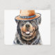 Postal Festiva Gracioso Rottweiler Con Gorra