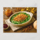A cozy Thanksgiving postcard featuring the classic green bean casserole topped with crispy onions. Perfect for sharing holiday warmth, sending festive greetings, or adding a delicious seasonal touch to your Postcrossing swaps.