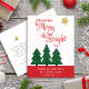 "Que tus días sean alegres y brillantes". Un ilustracion lúdico de una cita de tipografía de escritura roja y árboles verdes cazadores contra diminutas estrellas purpurinas de oro en blanco te ayuda a abrir el camino a los Navidades y al Año Nuevo. Siente el calor y la alegría de la temporada de vacaciones cada vez que envíes esta linda y divertida postal de saludo personalizado. En mi colección de tiendas "Navidades Days Be Merry & Bright" también están disponibles sobres de correspondencia y coordinación, pegatinas, giftwrap, almohadas, artículos de aseo, joyería y otros productos. ¡Envíe esto a alguien especial! Puede personalizar fácilmente esta tarjeta postal de saludo de vacaciones de los Navidades escribiendo en su saludo y nombres y personalizando la parte posterior utilizando la plantilla fácil de usar o eliminando para una nota manuscrita. Por favor, envíame cualquier pregunta o petición.