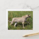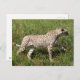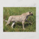 Chita africana (Acinonyx jubatus) caminando sobre el césped visto desde su perfil