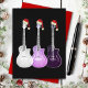 Navidades Funny Humor De Guitarra Eléctrica Festividad De Arte Pop Morado. Una gran tarjeta de Navidades psicodélicos de arte pop para los amantes de la música, especialmente los chicas adolescentes. Dibujos de arte psicodélico de tres guitarras en violeta etérea translúcida creada por la artista Catherine Sweetman